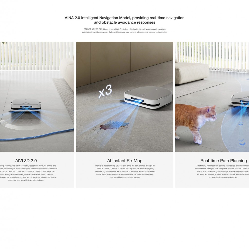 همچنین سیستم AINA™ AI Object Avoidance یکیاز پیشرفتهترین تکنولوژیهای بهکاررفتهدر جارو رباتیک اکووکس ECOVACS X5 PRO است کهبا استفادهاز هوش مصنوعی (AI) وحسگرهای پیشرفته، بهدستگاه ها این امکان را میدهد تا به صورت هوشمندانه و دقیق از برخورد با موانع جلوگیری کنند. اینسیستمبه جارو رباتیک اجازه میدهد تا به صورت ایمن و مؤثر در محیطهای مختلف حرکت کنند و تمیزکاری را به بهترین شکل ممکن انجام دهند.