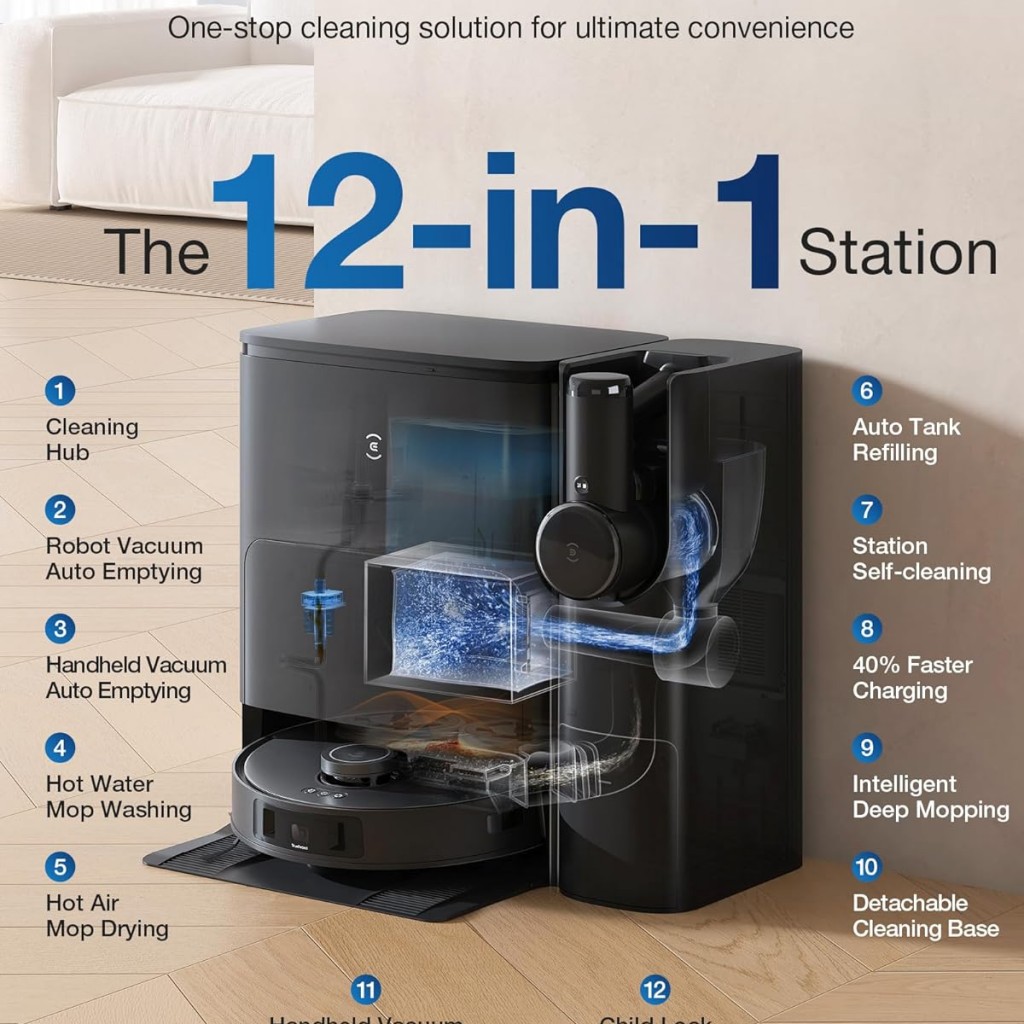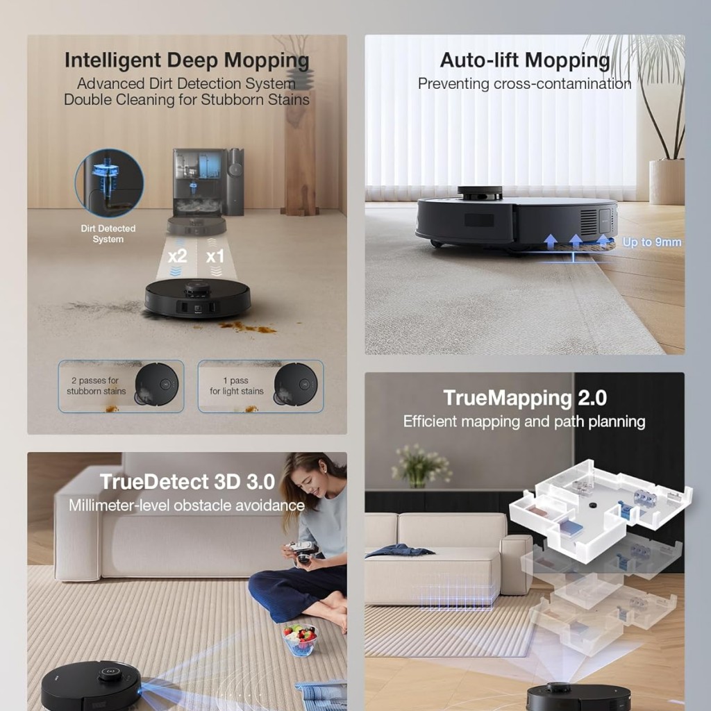 جارو رباتیک اکوواکس T30s Combo با توان مکش 11000 پاسکال، قادر است تمامی ذرات ریز و درشت، گرد و غبار، موهای حیوانات خانگی و سایر آلودگیها را به خوبی جمعآوری کند. این قدرت مکش بالا، این دستگاه را به یکی از قدرتمندترین جاروهای رباتیک موجود در بازار تبدیل کرده است. همچنین، این جارو رباتیک با برخورداری از سنسورهای هوشمند، به صورت خودکار قدرت مکش را براساس نوع سطح و میزان آلودگی تنظیم میکند.