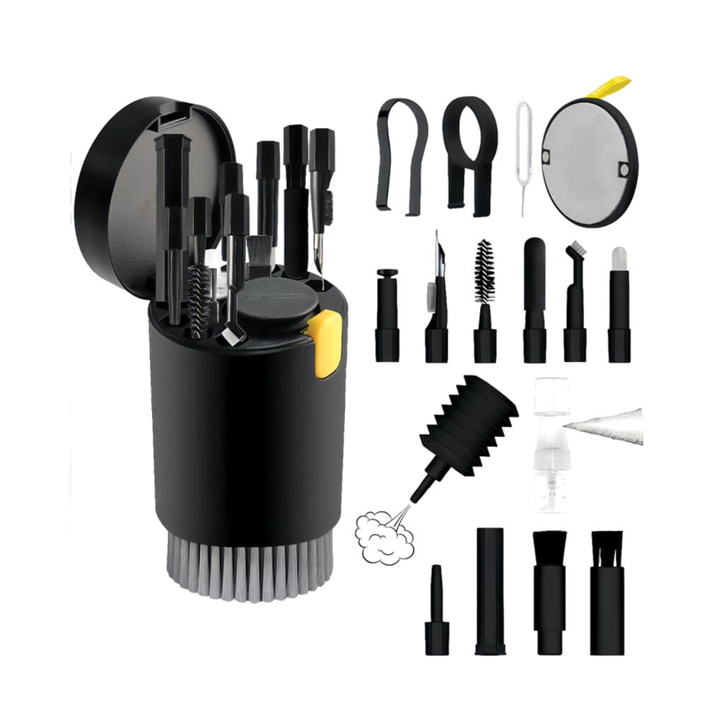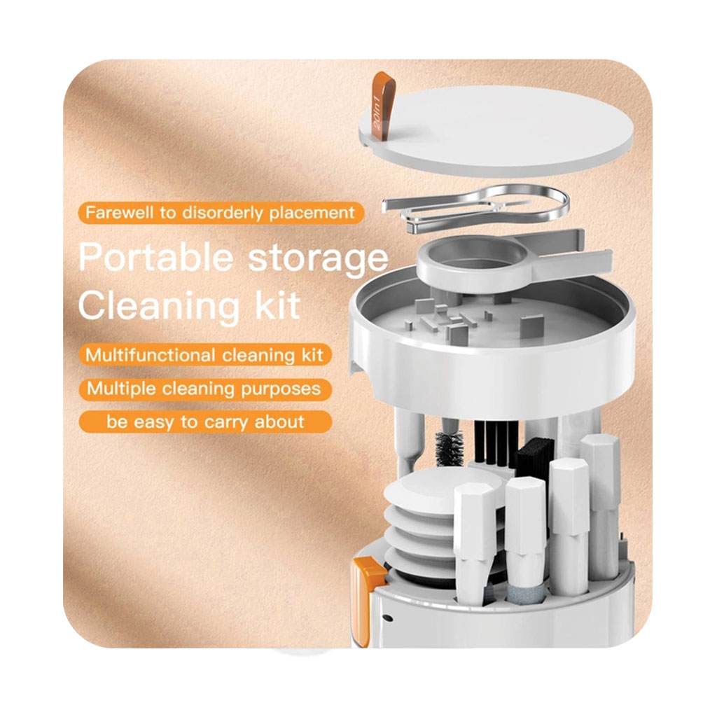 این پک تمیز کننده چندمنظوره تمامی ابزارهای لازم برای نظافت هر نوع تجهیزات الکترنیکی را در یک جعبه استوانه ای شکل جای داده است. تمامی ابزار ها به شکلی کاملا خلاقانه در محفظه این محصول جای گرفته است.